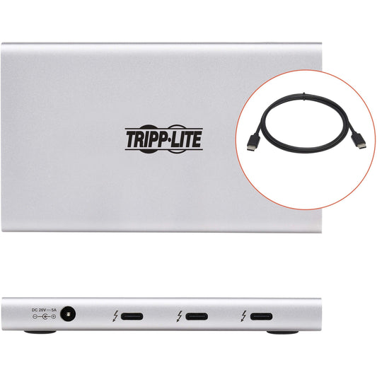 Tripp Lite 4-Port Thunderbolt 4 Hub 8K 2x 4K 60 Hz USB 3.2 Gen 2 USB-A Port 100W Charging Gray