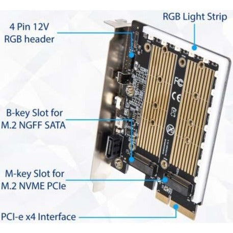 IO Crest M.2 M-key and M.2 B-key SSD RGB Adapter Card with Heatsink 12V ARGB PIN