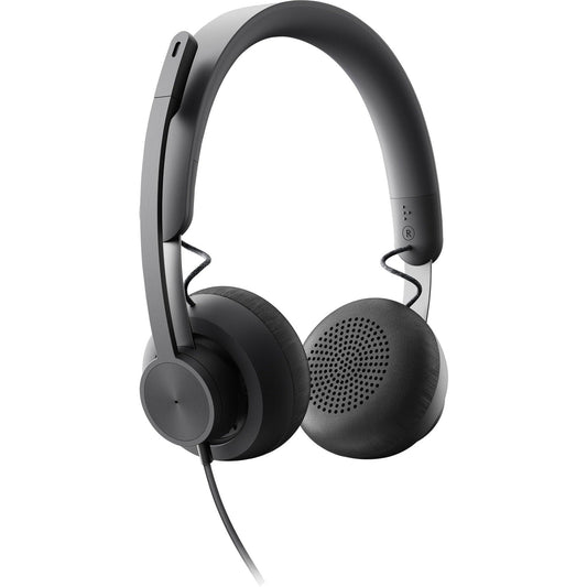 Logitech Zone 750 Wired On-Ear Headset with advanced noise-canceling microphone simple USB-C and included USB-A adapter plug-and-play compatibility for all devices
