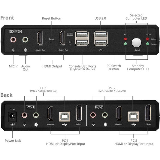 SIIG 2 Port 4K HDMI 2.0 Dual-Head Console KVM Switch with USB 2.0