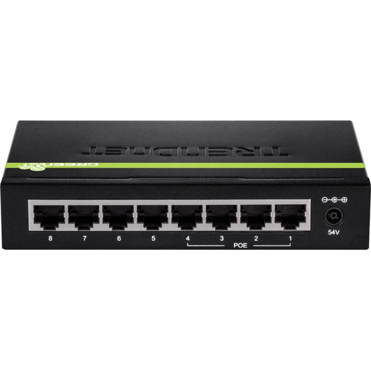 TRENDnet 8-Port Gigabit GREENnet PoE+ Switch; TPE-TG81g; 8 x Gigabit PoE+ Ports; Rack Mountable; Up to 30 W Per Port with 110 W Total Power Budget; Ethernet Network Switch; Metal; Lifetime Protection