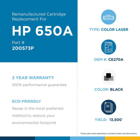 Clover Technologies Remanufactured Laser Toner Cartridge - Alternative for HP 650A (CE270A CE270-67901) - Black Pack