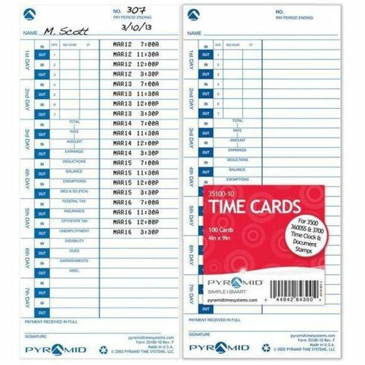 Pyramid 500/3700 Time Clock Universal Time Cards