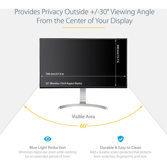 StarTech.com Monitor Privacy Screen for 32 inch Display Widescreen Computer Monitor Security Filter Blue Light Reducing Screen Protector