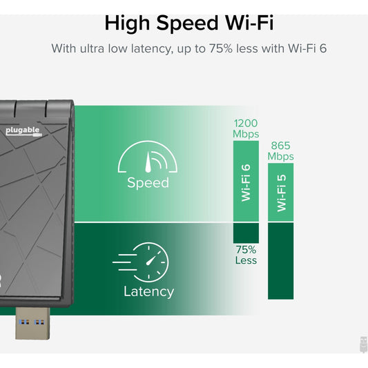 Plugable WiFi 6 USB WiFi Adapter for Desktop PC and Laptops AX1800 USB 3.0 and USB C