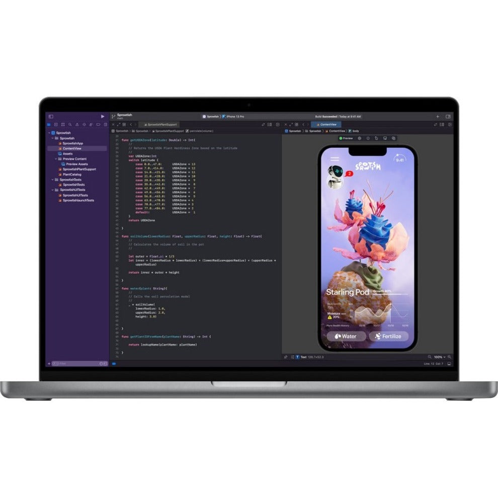Ferocious performance with game-changing battery life - that efficiency is the magic of Apple silicon. A single charge lets you compile up to four times as much code in Xcode or edit images for up to twice as long in Lightroom Classic. And unlike other notebooks MacBook Pro delivers the same amazing performance whether it's plugged in or not.