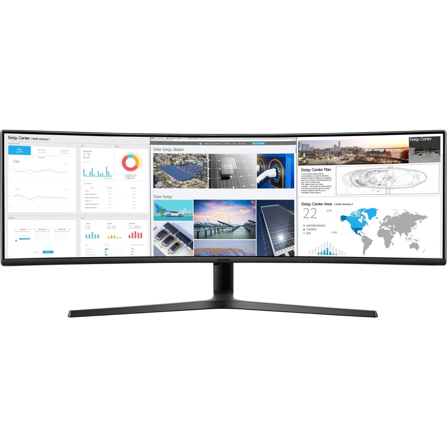 Samsung's CJ890 Series super ultra-wide curved monitor boasts a massive amount of real estate on one chassis combined with exceptional performance. It's designed for any business application involving large data sets and is the perfect replacement for multiple monitor setups viewing large amounts of information on one screen and split screen viewing of multiple windows at once.