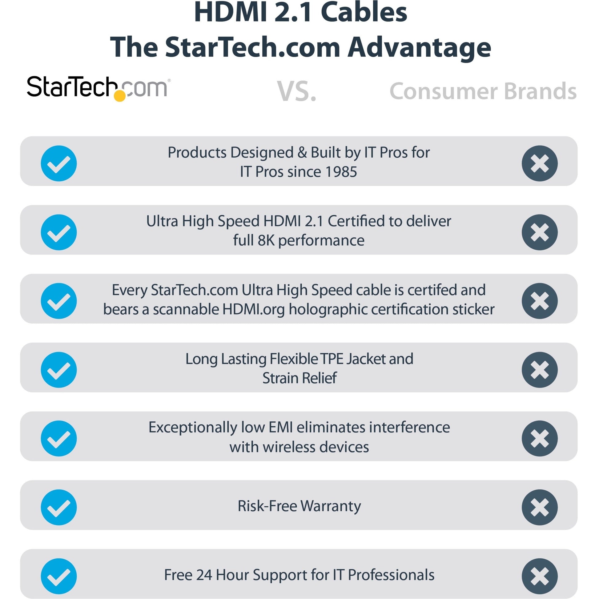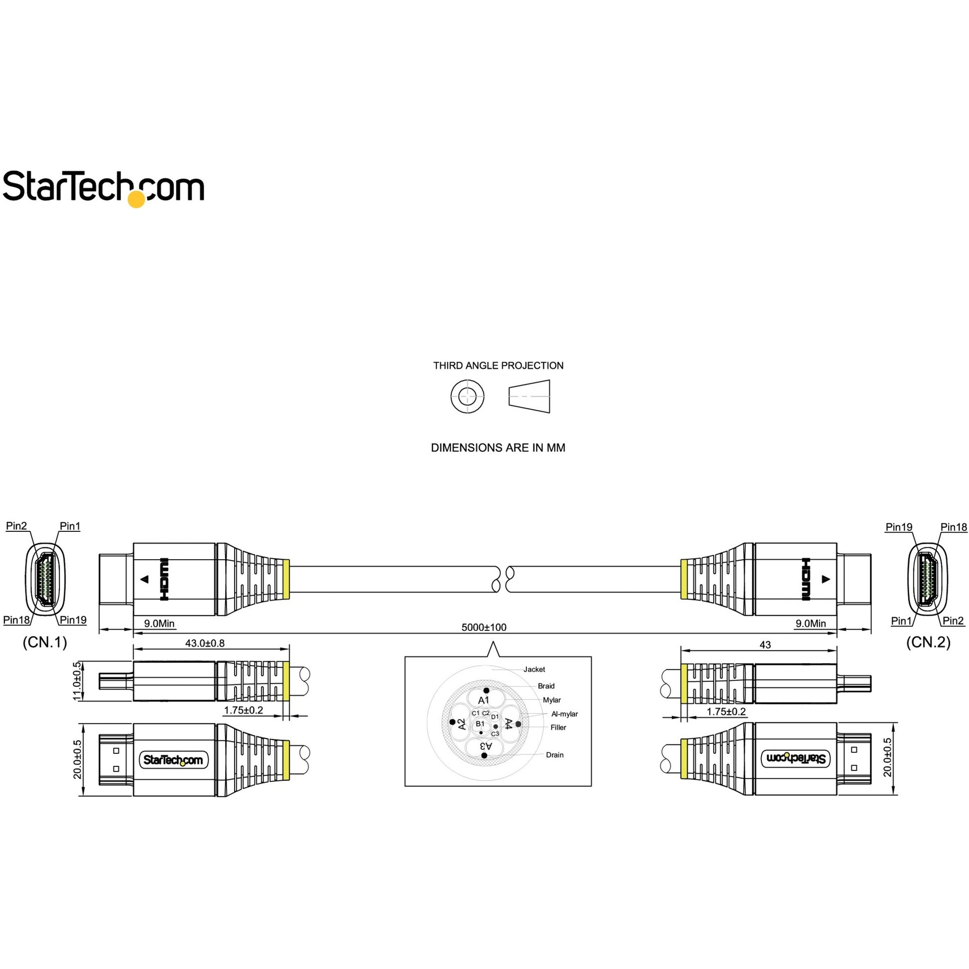 - SPECS: 5m (16.4 feet) | HDMI 2.1 | Certified Ultra High Speed HDMI Cable 48Gbps | HDMI Male to Male | 8 mm (0.31") Outer Diameter 26AWG | TPE Jacket | Al-Mylar Foil w/Braid EMI Shielding | Works with HDMI 2.0b/2.0a/2.0/1.4 | StarTech.com Lifetime Warranty