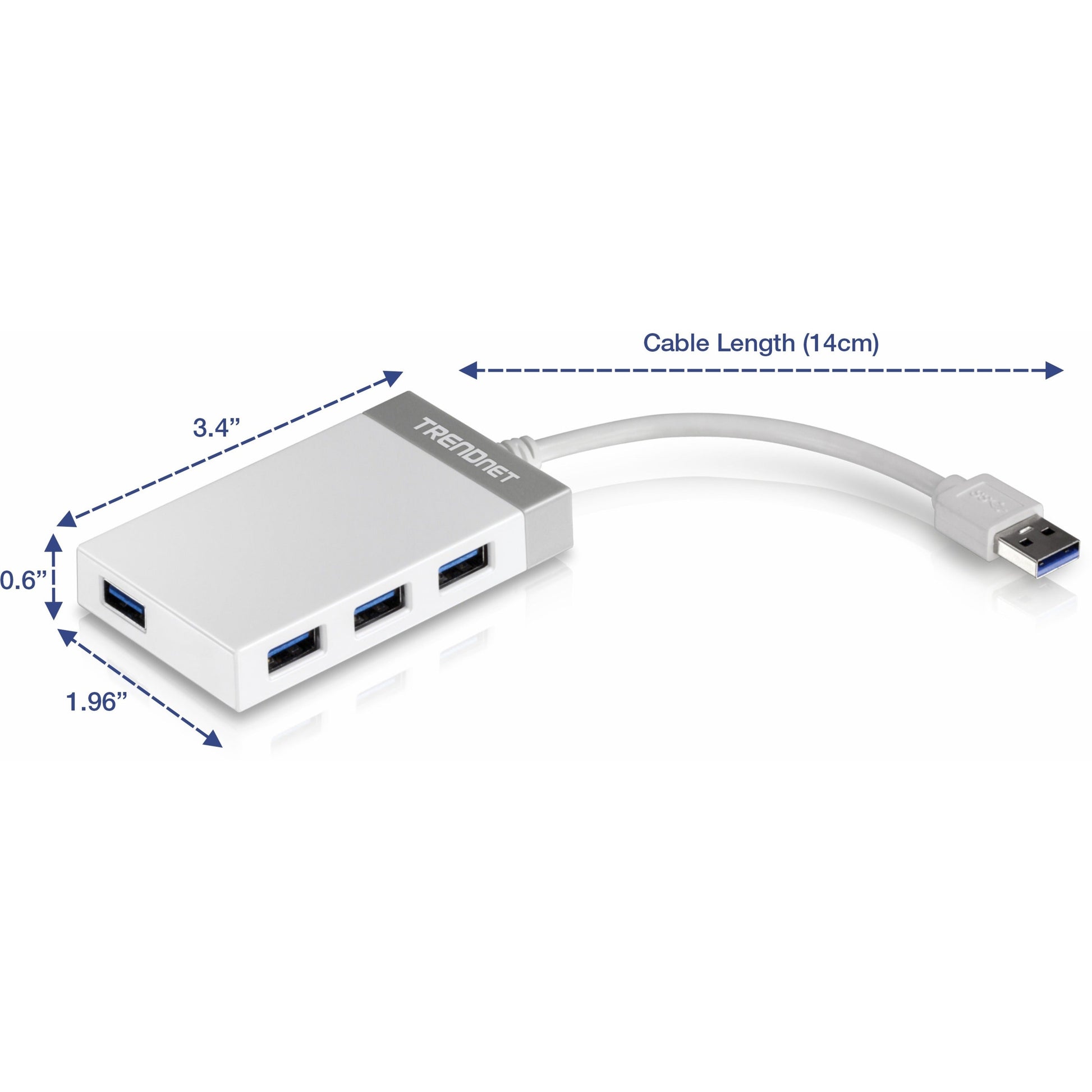 TRENDnet 4-Port USB 3.0 Compact Mini Hub with Built in USB 3.0 Cable Plug & Play Compatible with: Linux Windows Mac Nintendo Switch Backwards Compatible with USB 2.0 TU3-H4E - USB - External - 4 USB Port(s) - 4 USB 3.0 Port(s)